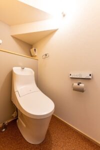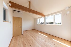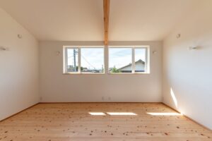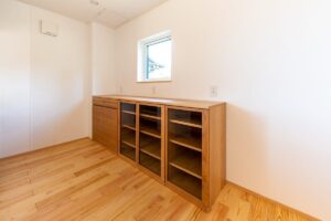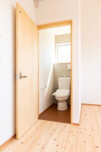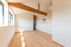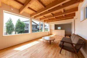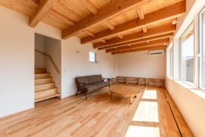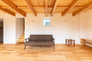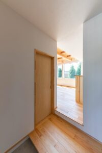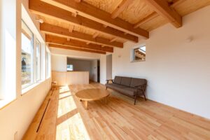 内部は浴室等の水まわりを2階に配置することで、1階のLDKをゆとりある大空間にしています。
