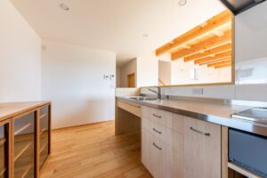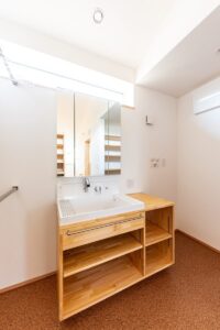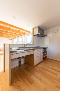 キッチンや洗面台などは大工造作で製作しました。