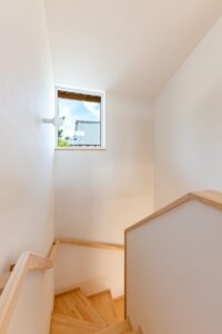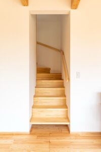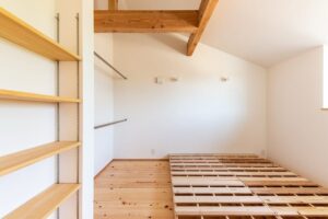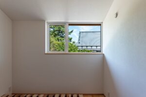 高基礎とし、床下空間を収納等に活用することで難しい敷地条件をクリアしています。