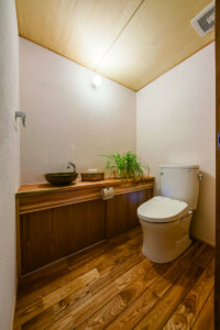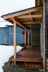 外壁材には杉板を用い、ウッドロングエコで塗装。